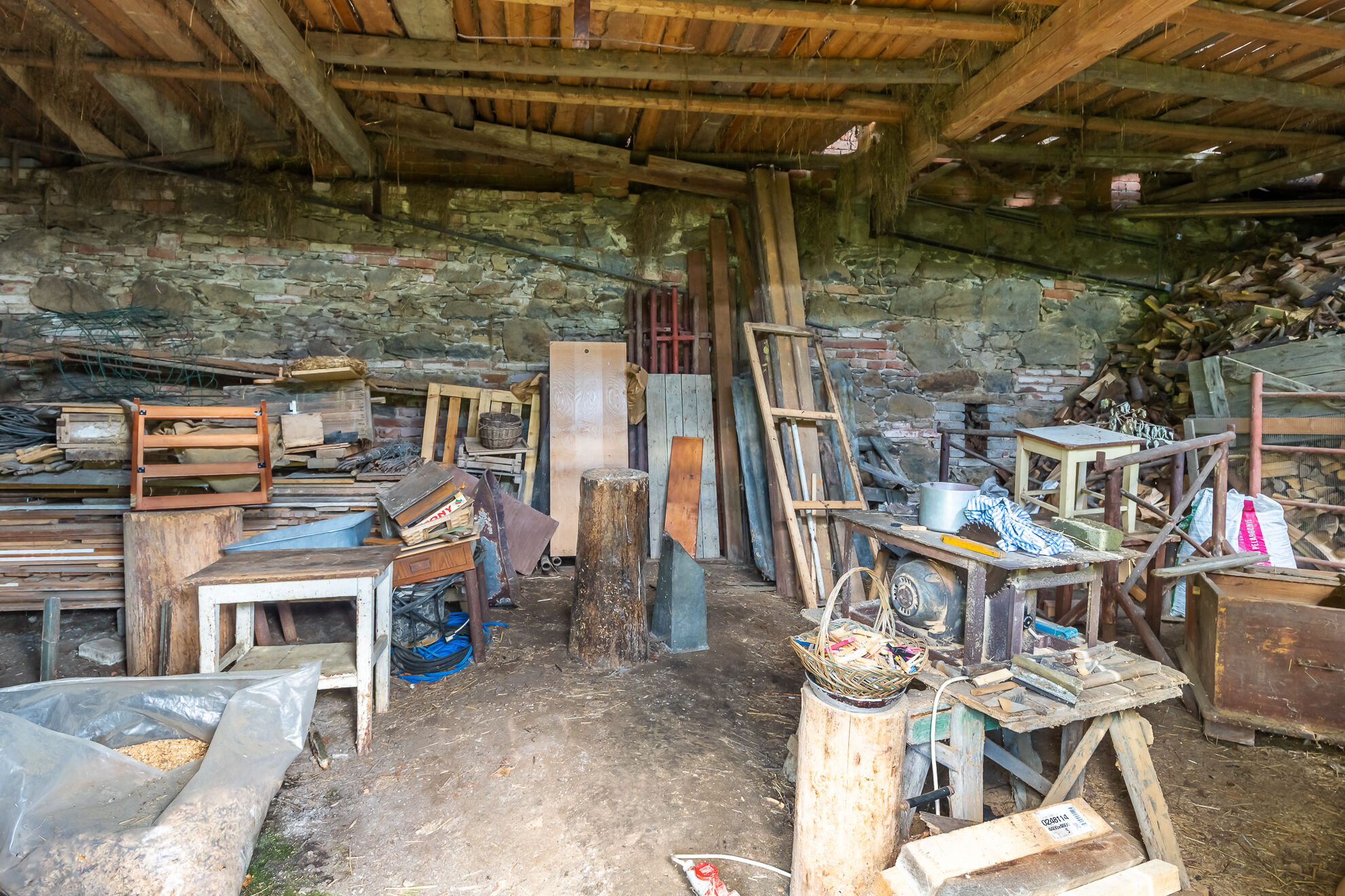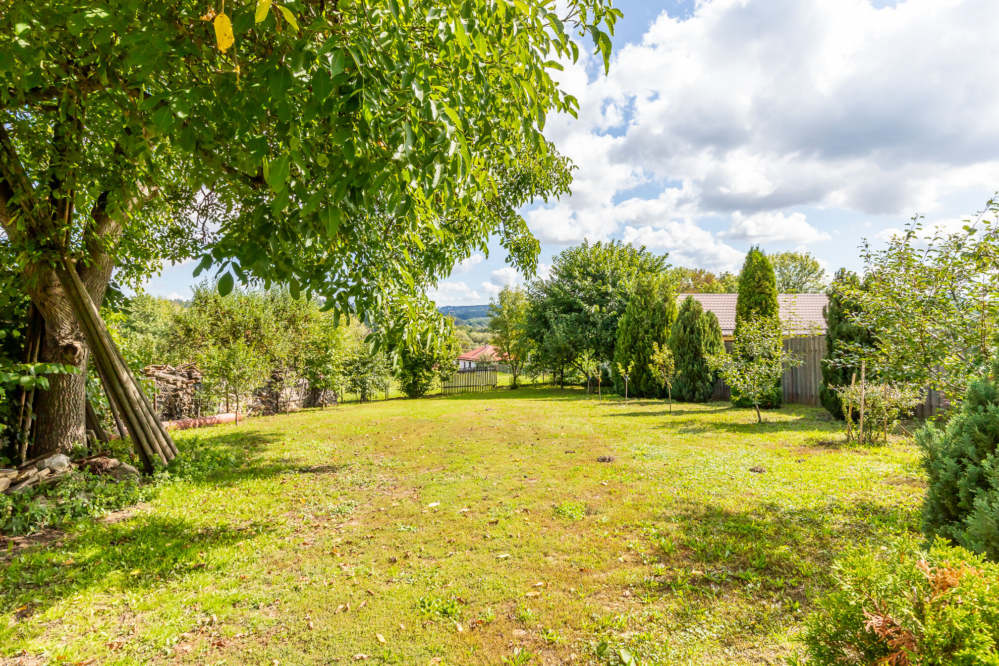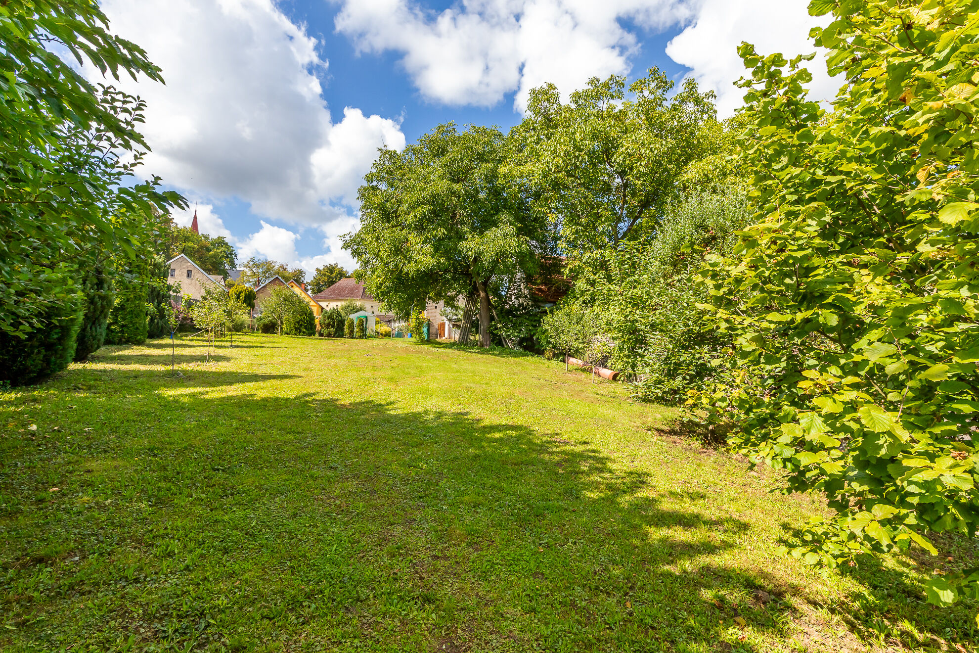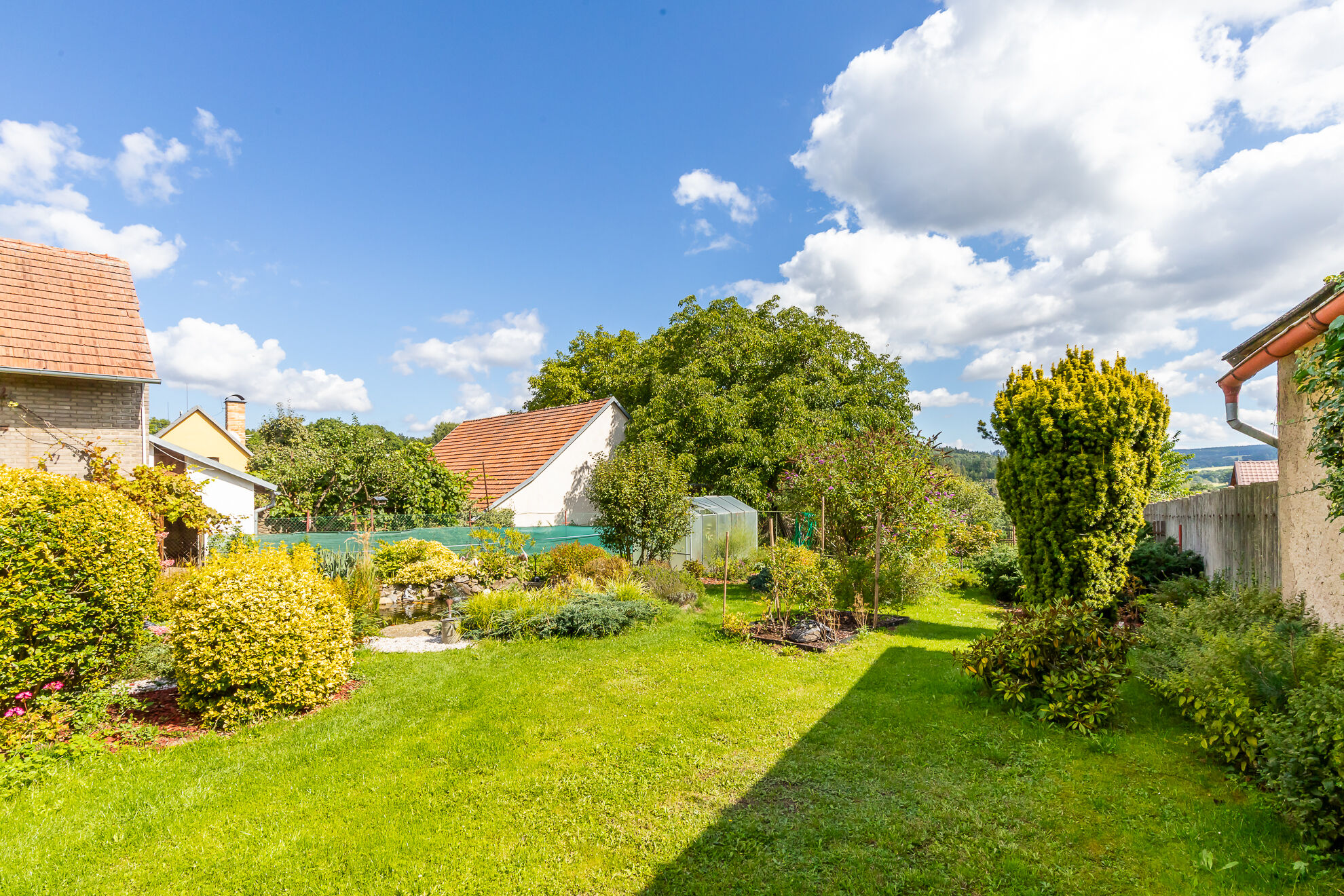 Pozemek, na kterém se dům a stavby nachází má rozlohu 1732m2, zastavěná plocha je cca 400m2, je zde již zmíněný dům, garáž s venkovní kuchyní a dalším prostorem (vše v přiložených plánech), dům je z části podsklepen, nad celou částí je půda (možnost předělání k bydlení), dále je tu stodola naproti domu 140m2.