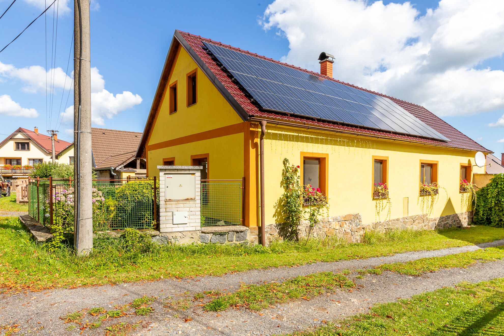 Vytápění je zde tepelným čerpadle + krbem, vytápění radiátory + podlahové topení obývací pokoj + koupelna, na střeše je FVE s úložištěm do baterii, dům má svou studnu a zároveň je napojen na vodovod, na pozemku je septik.